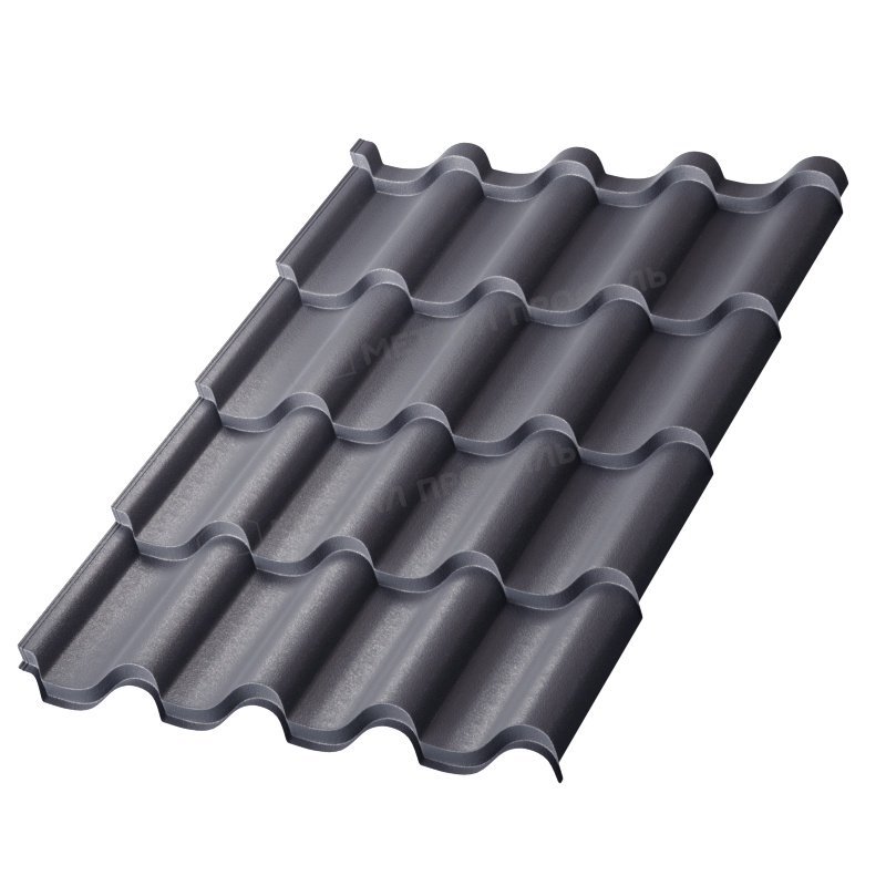 Металлочерепица Монтерроса-S от Металл-Профиль с толщиной 0,5 мм и покрытием VikingMP® E в цвете RAL 7024 Серый графит сочетает эстетику классической черепицы с прочностью металла. Это надежный материал для кровли, устойчивый к погодным условиям, с матовой текстурой для стильного вида крыши. Идеален для частных домов и коммерческих объектов, обеспечивая долговечность и простоту монтажа.