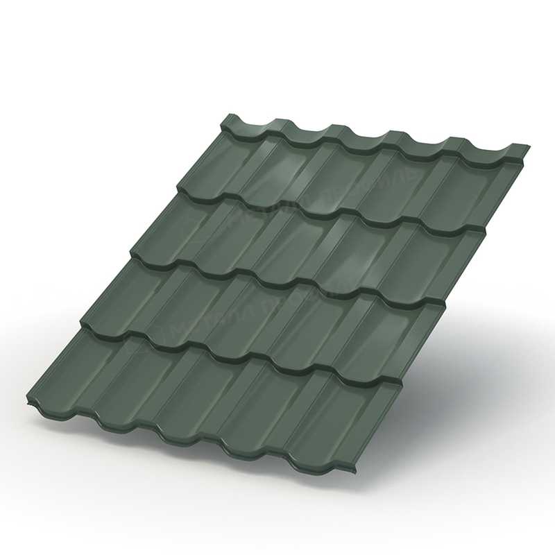 Металлочерепица с профилем Трамонтана-SL толщиной 0,5 мм и покрытием PURETAN® в оттенке RR 11 Элегантный зеленый представляет собой надежный кровельный материал от компании Металл-Профиль. Этот продукт сочетает в себе эстетику натуральной черепицы с прочностью металла, обеспечивая долговечность и стильный вид для крыш жилых и коммерческих зданий. Покрытие PURETAN® гарантирует стойкость к коррозии и выцветанию, а цвет "Элегантный зеленый" добавляет гармонии с природой.